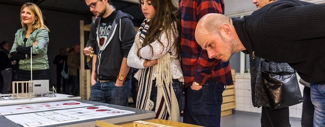 - Sprekers waren Jan Poolen van ZEEP architects and urban designers, directeur Bart Schoonderbeek van Schipper Bosch, initiator van The Small House in Londen, ism de architecten Dyvik Kahlen architects uit Londen, verantwoordelijk voor het ontwerp; Tim van de Grinten van Moodworksarchitecture over het concept Heijmans ONE en een presentatie van studenten TU Delft over het micro-compact home van Richard Horden. In de zaal was The Small House uit Londen op schaal uitgezet. Locatie was De Nieuwe Stad in Amersfoort. Foto: Fred Oosterhuis